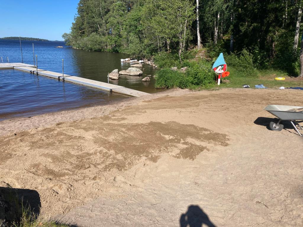 Ängsholmens friluftsförening har sett till att kommunen lagt en lastbilslast sand vid vår fina badplats. Starka medlemmar såg till att sanden spriddes ut. Tack för det!