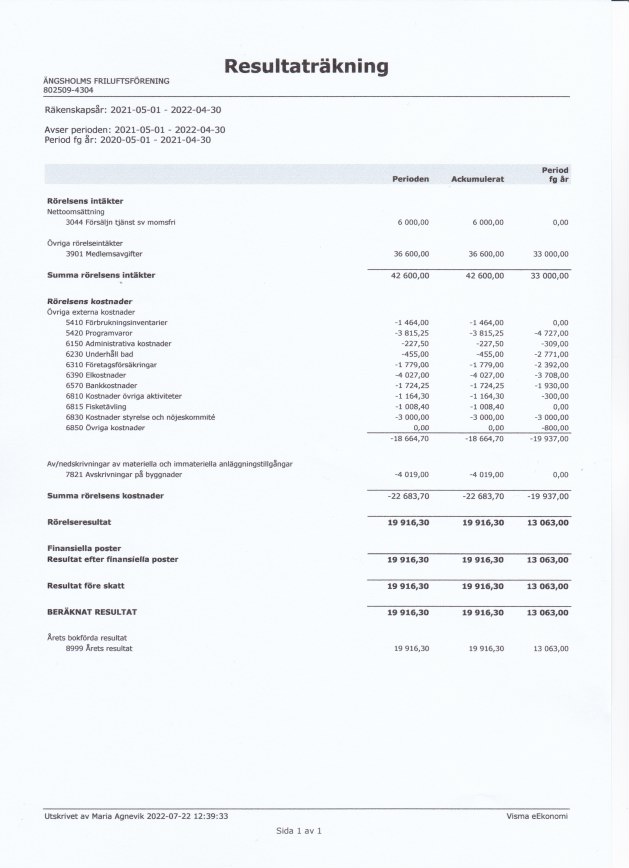 Räkenskapsår 2021-2022: Resultaträkning / Balansräkning